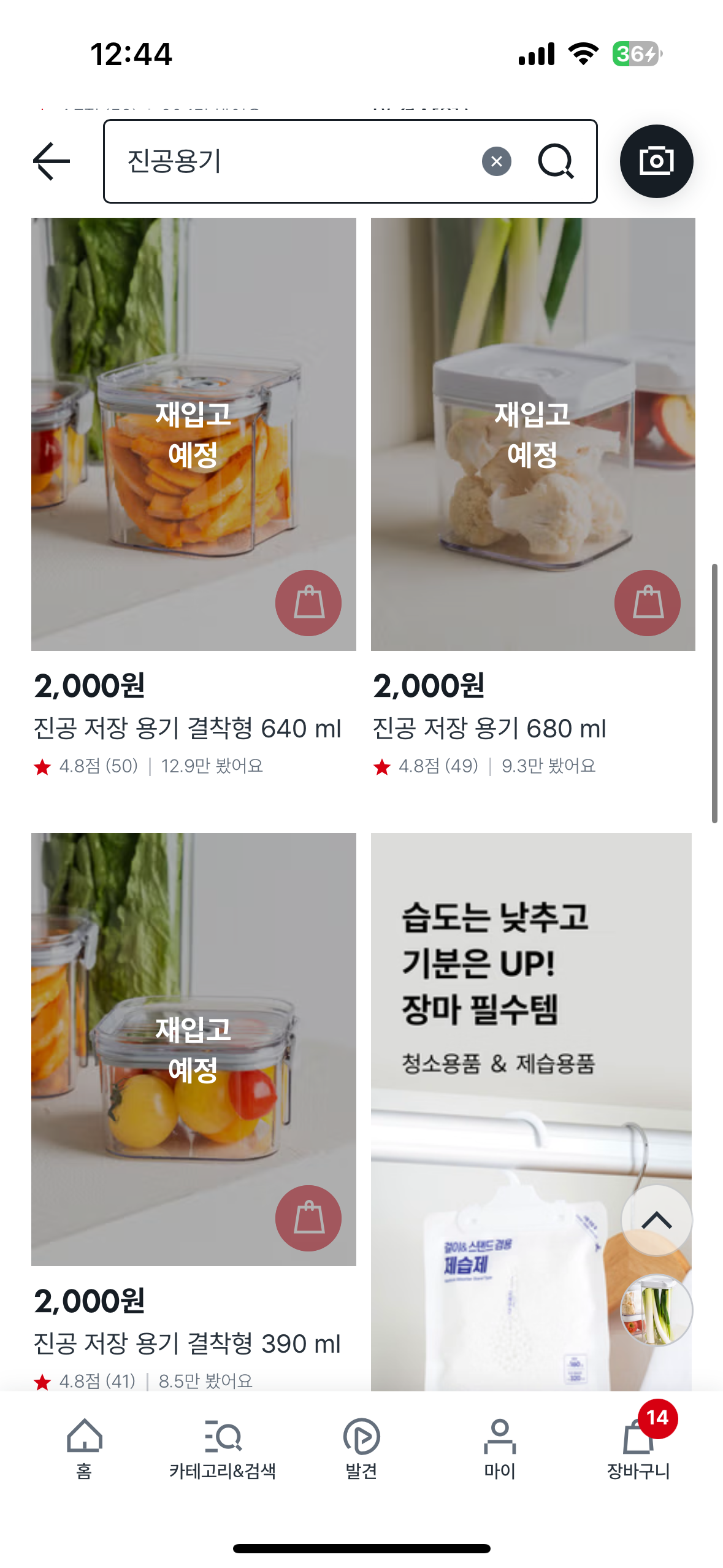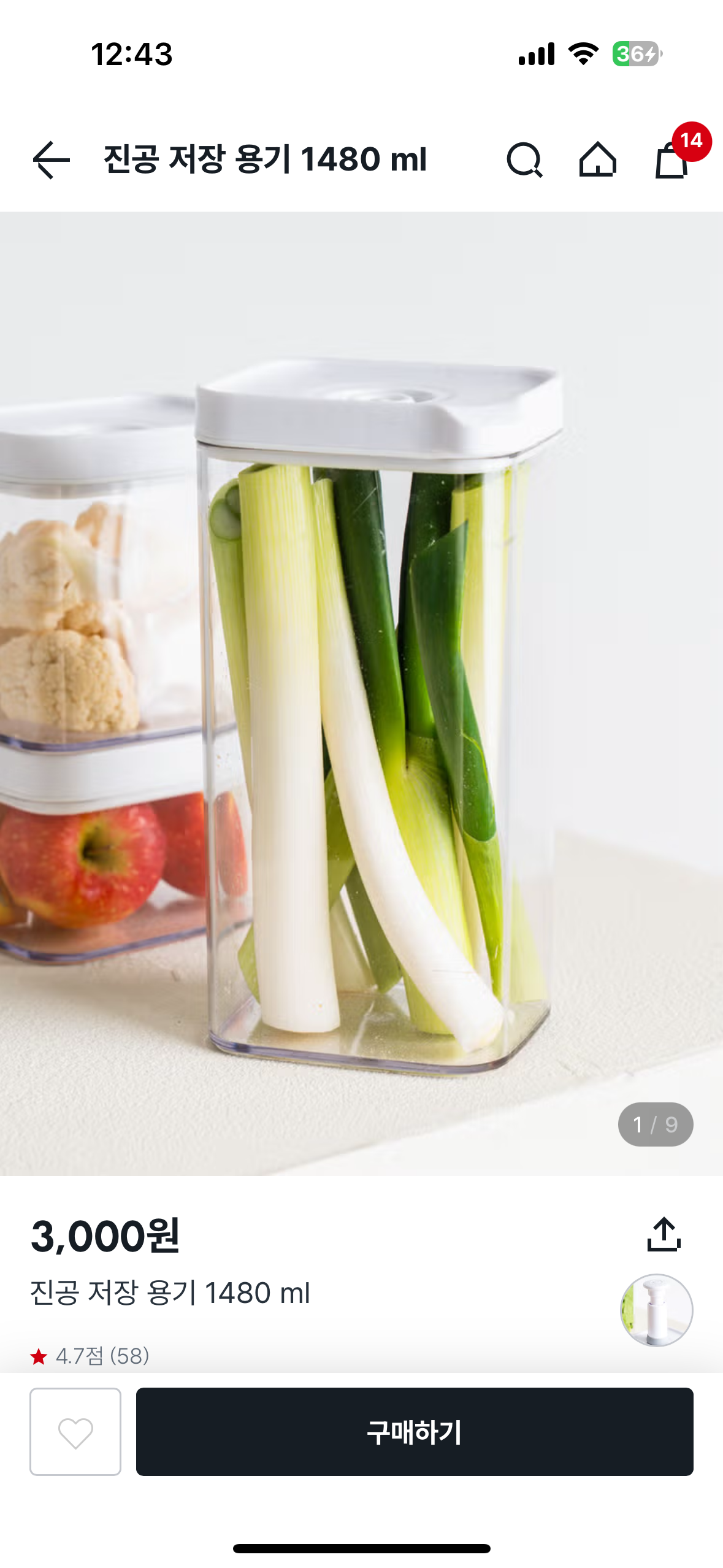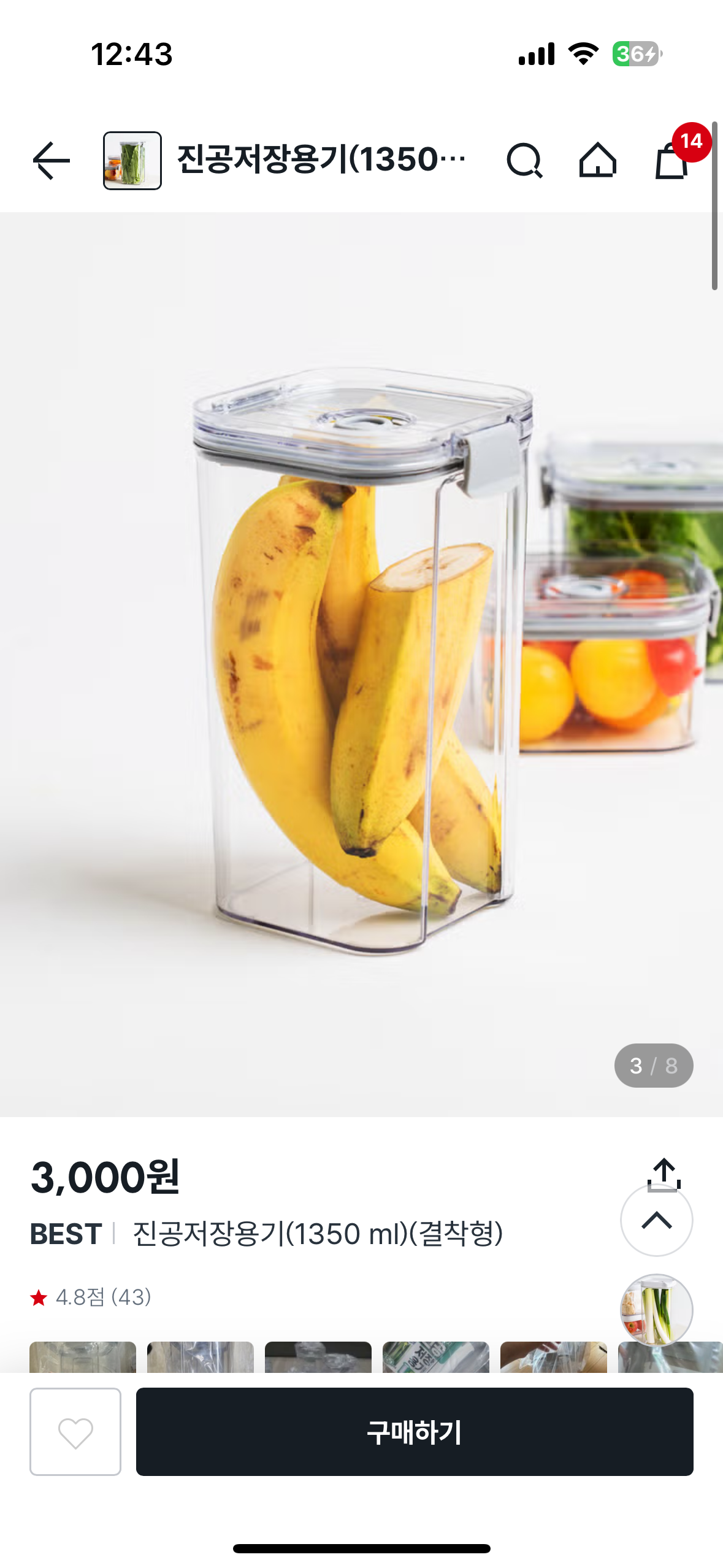 진공용기는 택배로는 대부분 품절이에요! 하지만 알람설정 해놓으면, 한두시간 정도내에는 구매가능한 수량이 풀리는 것 같더라구요. 그리고 저는 매장재고를 확인하고, 매장픽업으로 미리 구매해서 산적도 있어요!