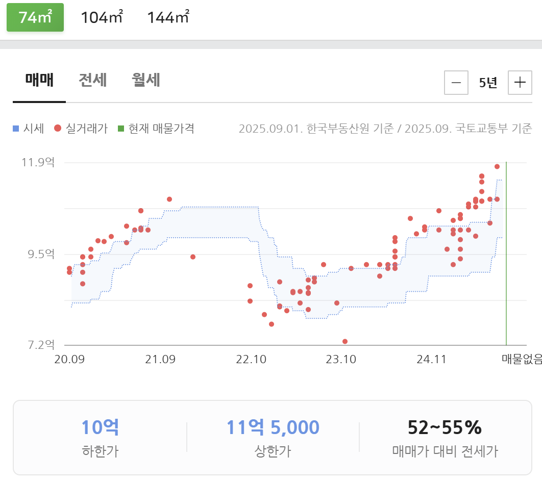 25년 4월까지만해도 실거래 상한가가 11.2이었는데, 최근 12.8이나왔다. 3개월만에 1.6? 10프로 넘게 오른다?