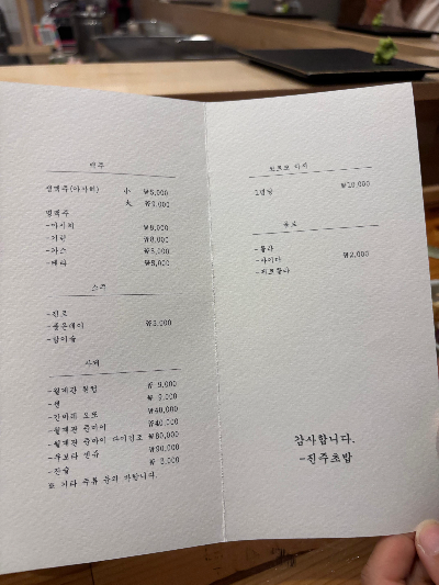 일단 메뉴판은 작년 기준이에요!! 지금은 점심 오마카세를 안하시는 것 같더라구요 ㅜㅜ 너무 아쉬워라...
